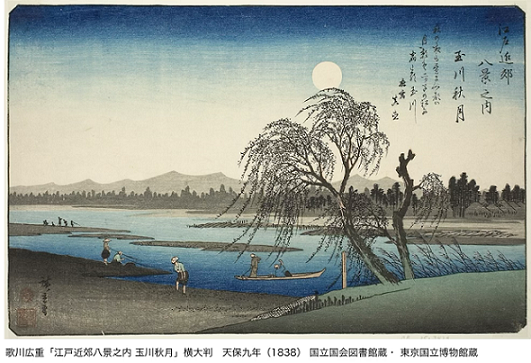 向を眺めており、歌川広重「江戸近郊八景之内玉川秋月」は 左岸から対岸を眺める構図である…