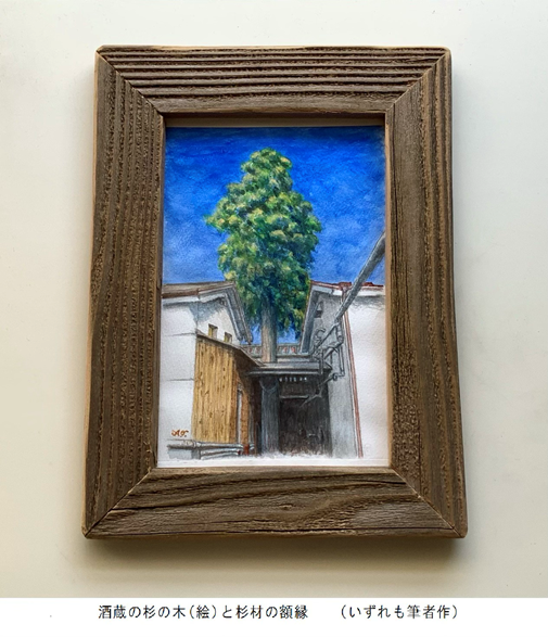 美味しくしてくれる杉の木に感謝の気持ちを込めて描いた。ちなみに絵を収めた木の額縁も杉板